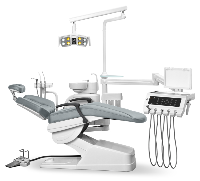 - Модуль ассистента на 4 инструмента с пылесосом и слюноотсосом (шланги с увеличенным просветом для использования с хирургической помпой).